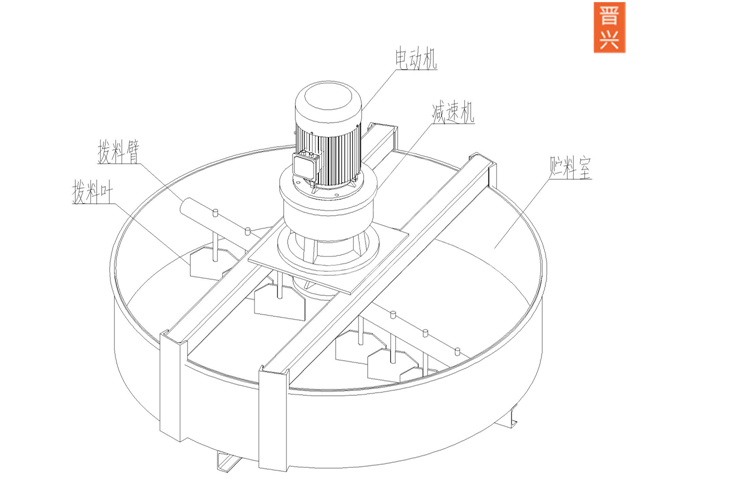立式喂料機由盤體、撥料臂、機架、減速機、電動機等機構(gòu)組成,其工作方式是通過電動機驅(qū)動減速機,然后帶動整個撥料臂勻速旋轉(zhuǎn),從而使得交錯排列的撥料葉對物料進行均勻撥料。隨著撥料臂的旋轉(zhuǎn)從而使物料均勻流出。出料口可根據(jù)需要控制開啟大小以控制流量,以保證下道工序正常生產(chǎn)。